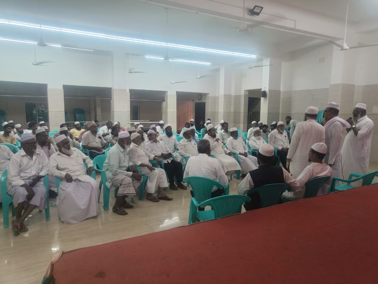 In which the imams and elders of 25 mosques participated. In the presence of Maulana Mansoor Ahmad Sahib Kashifi (President Jamiat Ulama Tamil Nadu) and Haji Hasan Ahmad Sahib (General Secretary Jamiat Ulama Tamil Nadu) an adhoc committee was formed with the following persons.